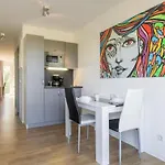 Questa struttura offre una cucina completamente attrezzata con un microonde, un bollitore elettrico e utensili da cucina, servizi per la preparazione di tè/caffè. Quest'appartamento è a due passi dalla stazione degli autobus Ferdinand-Nebel-Str. B - Home Apartments dispone di una terrazza.